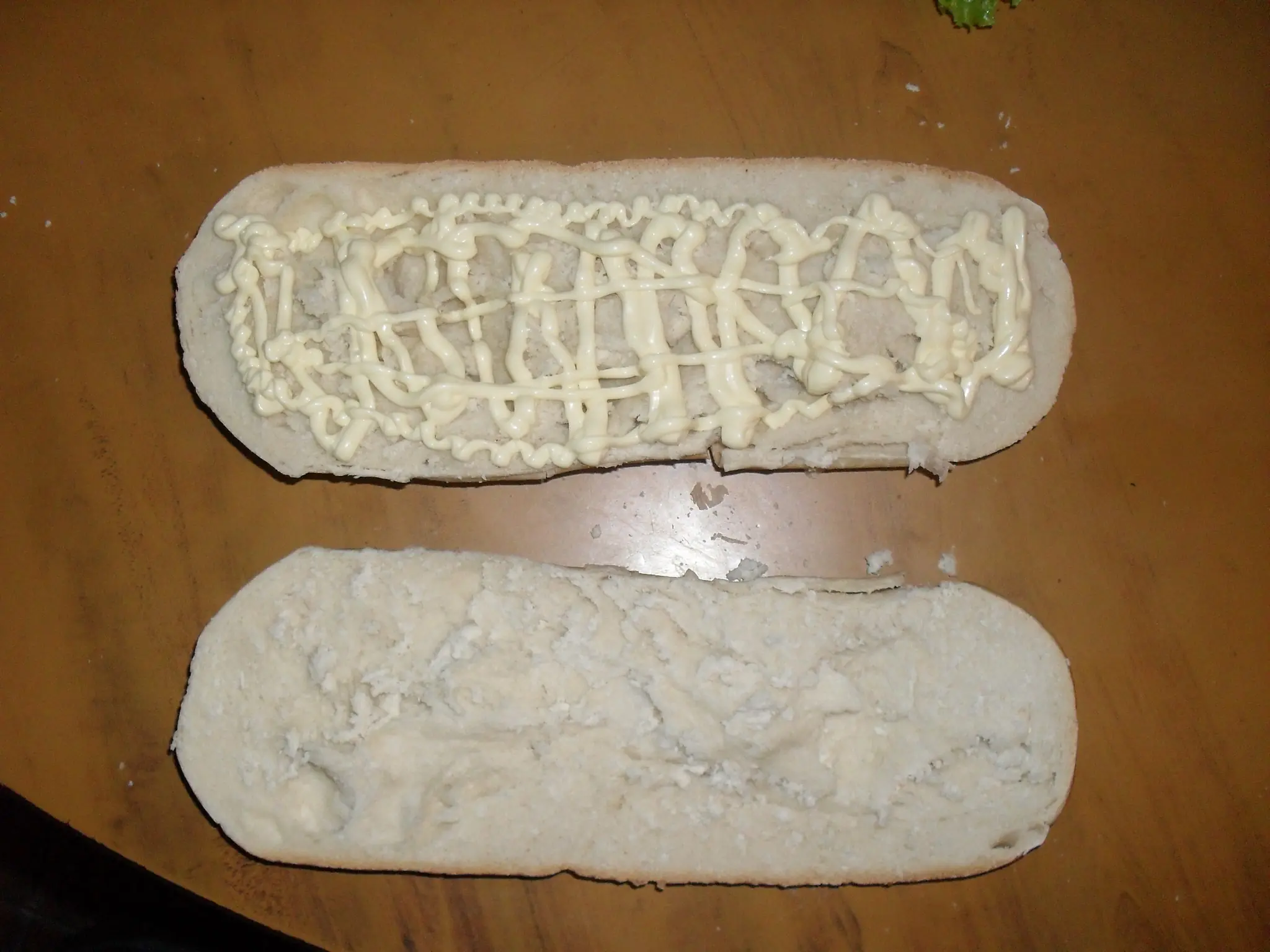 1º- cortamos el pan y agregamos mayonesa
