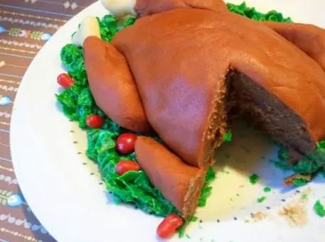 2. El pavo al horno que resultó ser un pastel de chocolate. Cuenta la leyenda que, al acercarse la Navidad, los pavos de un corral hicieron un curso de repostería exprés con el fin de engañar a sus dueños y darles el cambiazo en la cocina, después de hacerse los muertos.