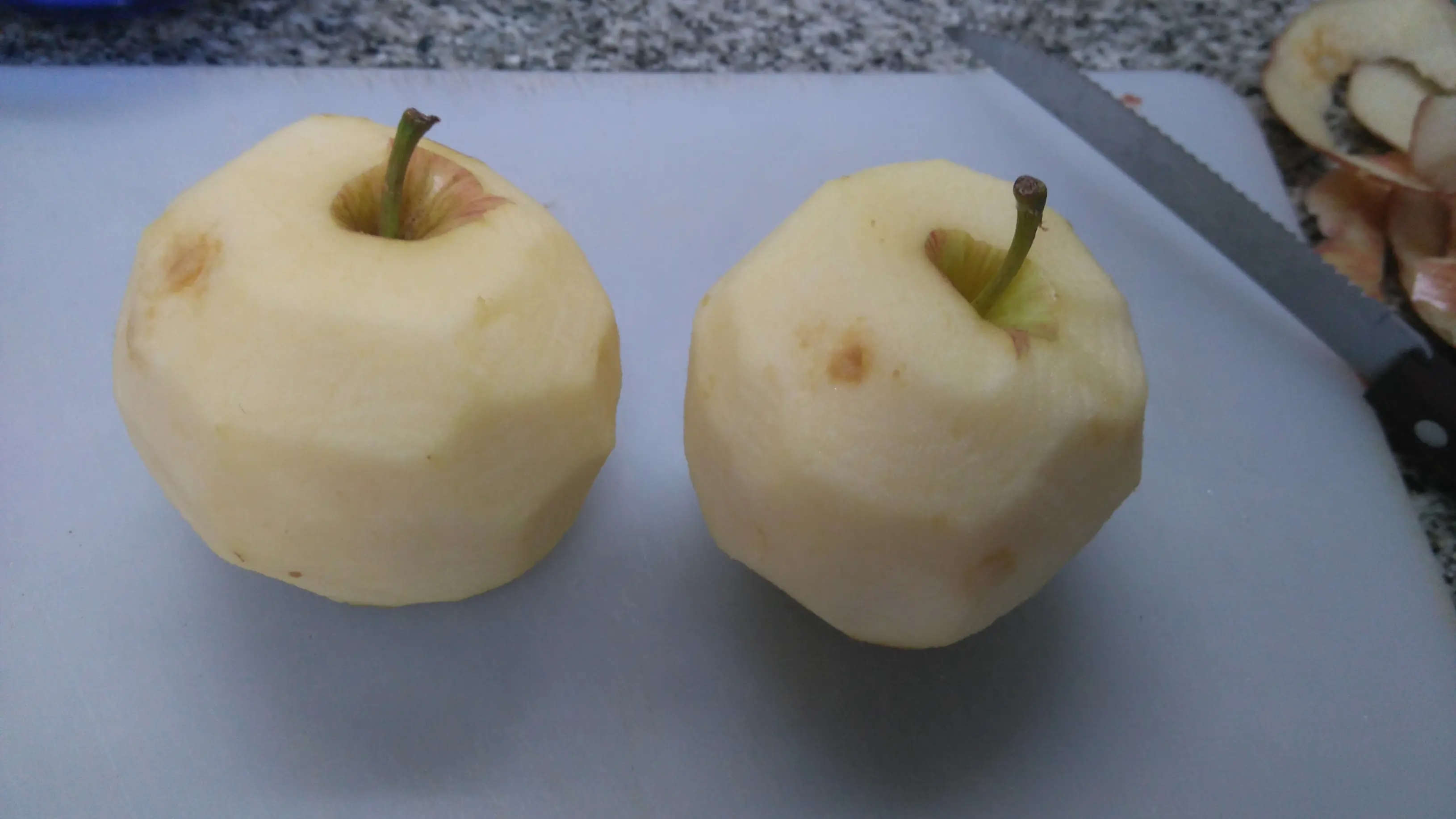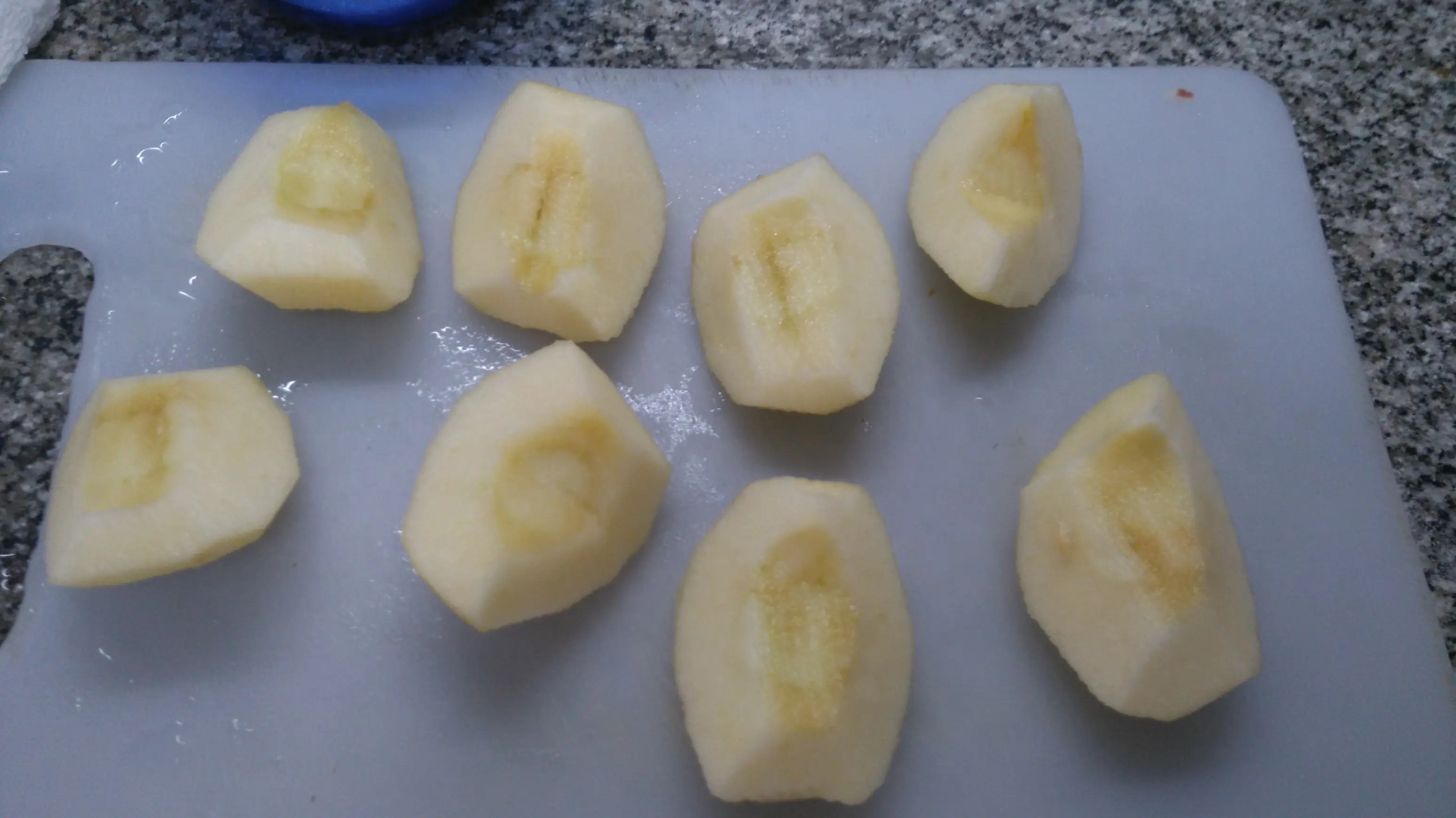 Pelar las manzanas, quitarles el centro con semillas y porquerías adicionales.