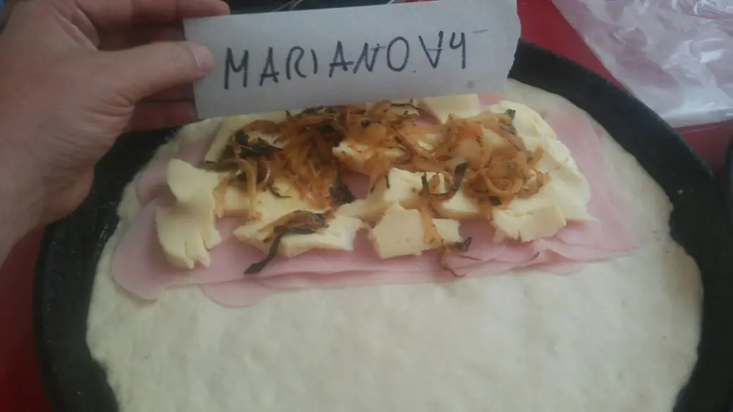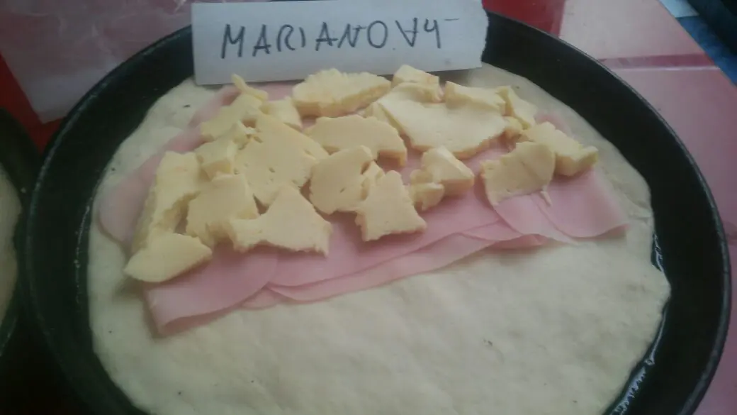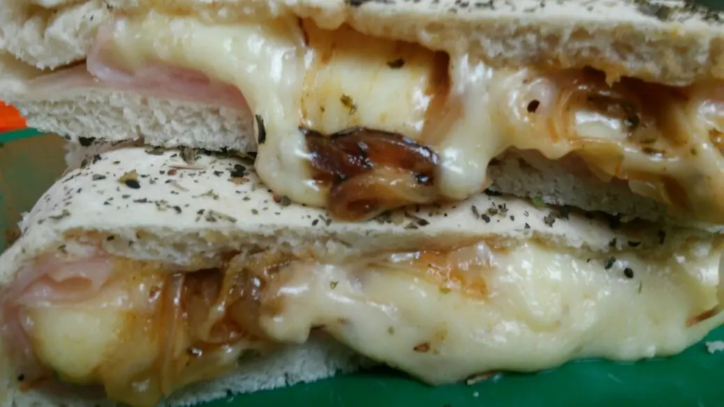 Ponemos el relleno, una con cebolla y la otra jamón y queso solo