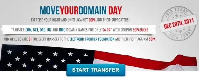 GoDaddy, la entidad mundialmente conocida con más registros de dominios en toda la red, participó activamente en la creación de esta ley y ahora está sufriendo las consecuencias. En cuanto se vio que la compañía apoyaba públicamente la propuesta la reacción de la red fue rapidísima: un usuario en Reddit animó en un post a que todo el mundo se llevara sus dominios registrados en Reddit a otro sitio, tal y como hizo él mismo con sus 51 direcciones.