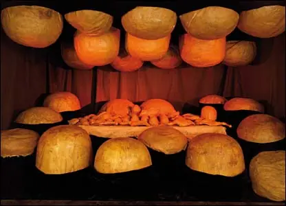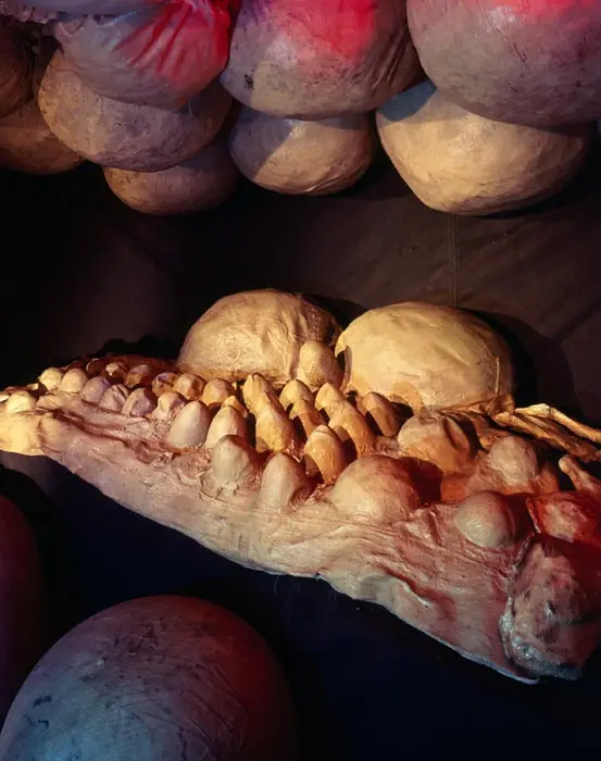 La Destrucción del Padre, (1974) es su obra más monumental en la que muestra trozos de cuerpo humano dentro de una cámara roja, una construcción que Bourgeois realizó como método de catarsis para eliminar en su mente la figura paterna del pasado, en un periodo de duelo justo después de la muerte de su marido.