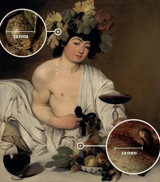 El nacimiento de Venus" y la "Primavera", de Boticelli; el "Bacco", de Caravaggio; la "Anunciación", de Leonardo da Vinci; el "Bautismo de Cristo", de Verrocchio; y el "Retrato de Eleonora de Toledo", de Bronzino, son los primeros lienzos que esta iniciativa de la empresa Haltadefinizione ha descubierto al detalle.