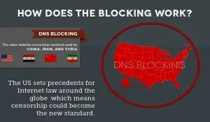 Alterar los servidores DNS de los proveedores de internet para que ciertos sitios web no sean accesibles, es decir, no cierran el sitio por no encontrarse bajo su territorio pero lo hacen inaccesible.