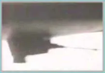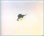 Supuestas Fotografías de un Modelo Vril en vuelo, se puede observar su caños y las letras "SS" en la parte baja de la aeronave.