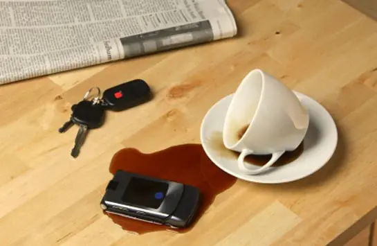 ¿Lo sacudes lo más que puedes y tratas de encenderlo otra vez? (No es recomendable. La humedad puede causar daño permanente.) ¿Buscas el horno de microondas más cercano para secarlo? (¡No!) ¿O lo llevas de regreso a la tienda de teléfonos y esperas que el daño esté cubierto por la garantía? (¡Prepárate para recibir una decepción!)