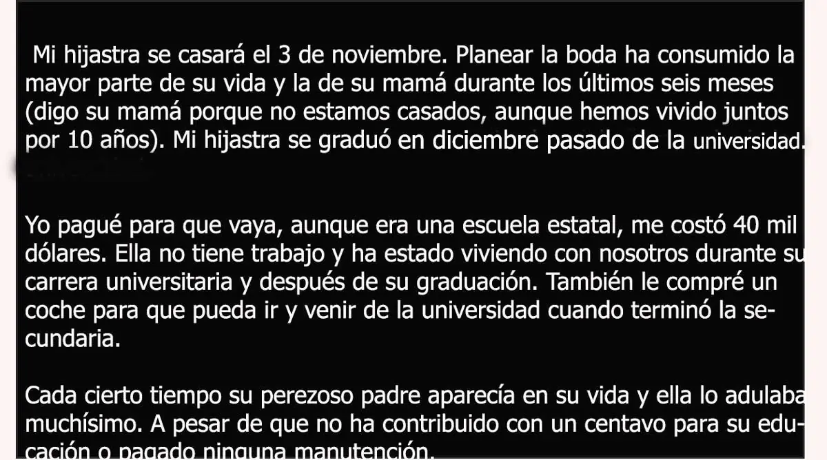 “Creo que nunca antes me había sentido tan enojado e irrespetado. Estaba temblando”. Esta historia está dando vueltas en las redes sociales. Se trata de un hombre que estaba muy entusiasmado por el matrimonio de su hijastra, a quien crió como si fuera su propia hija y a la cual les estaba financiand…
