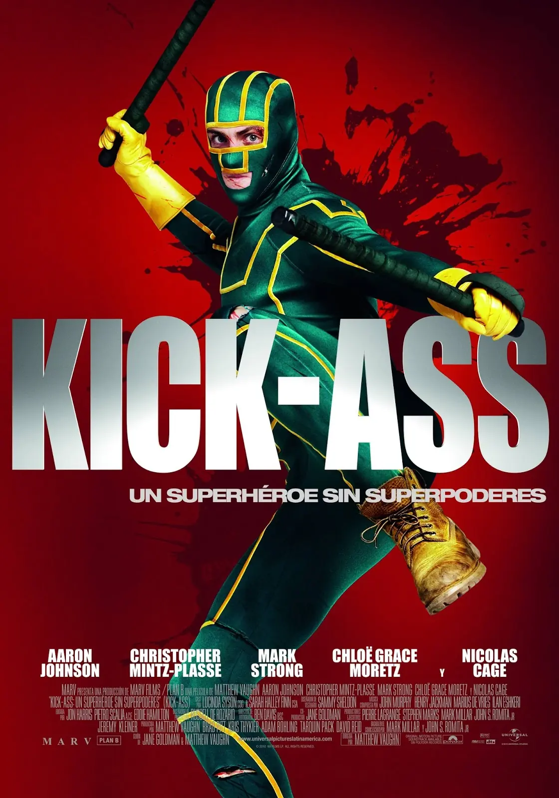 Kick-Ass (Conocida en España como Kick-Ass: Listo para machacar y en México como Kick-Ass: Un superhéroe sin superpoderes es una película de superhéroes basada en el cómic del mismo nombre creado por Mark Millar y John Romita Jr.. Dirigida por Matthew Vaughn y producida por Brad Pitt. Protagonistas:…